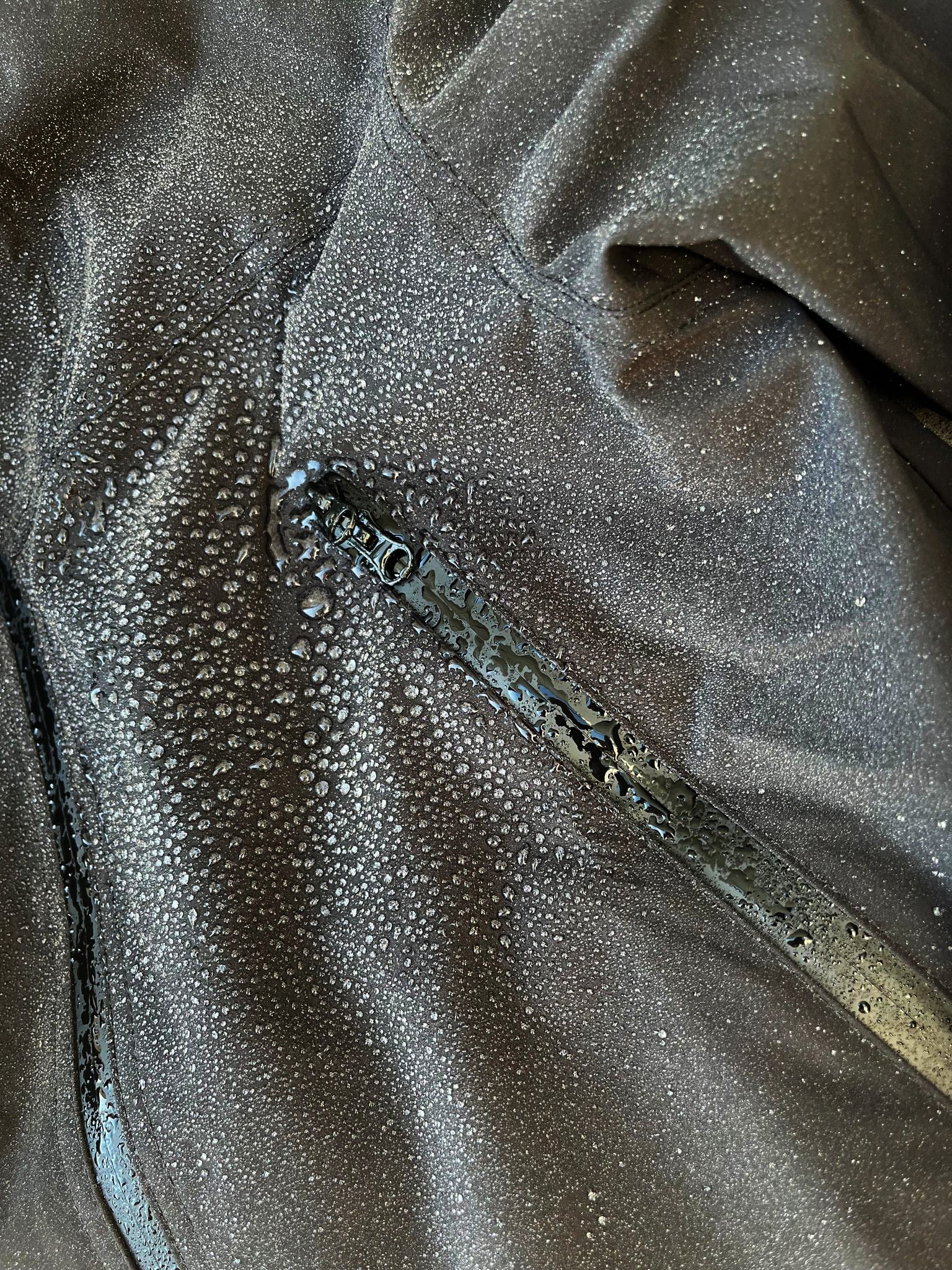 フロントファスナーには止水ジッパーを採用しております。